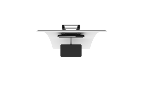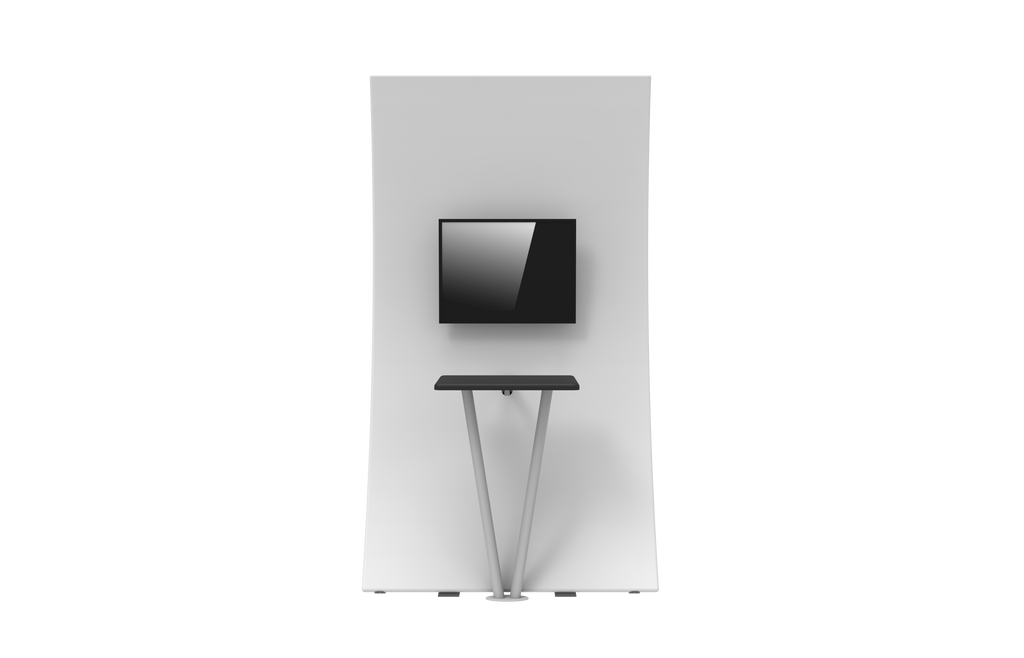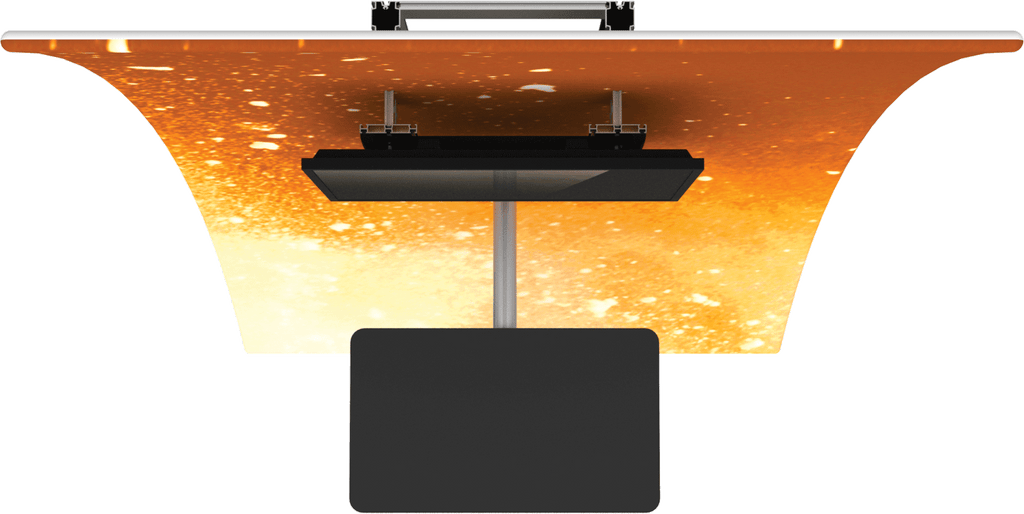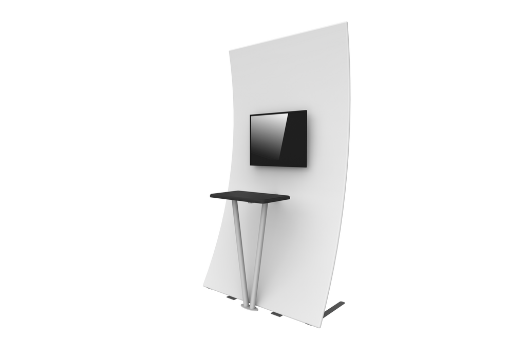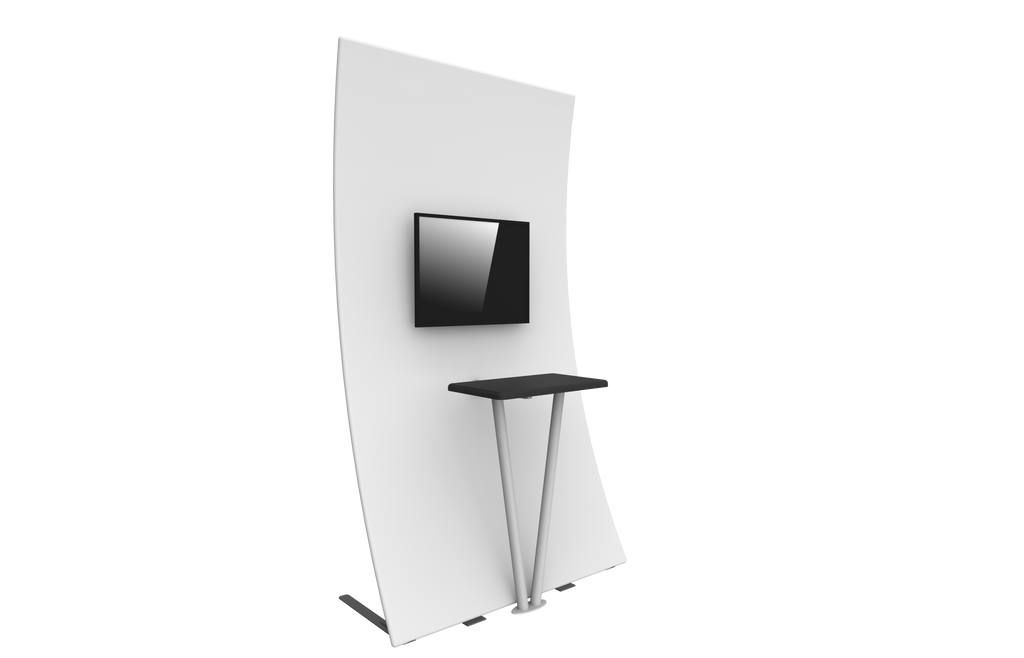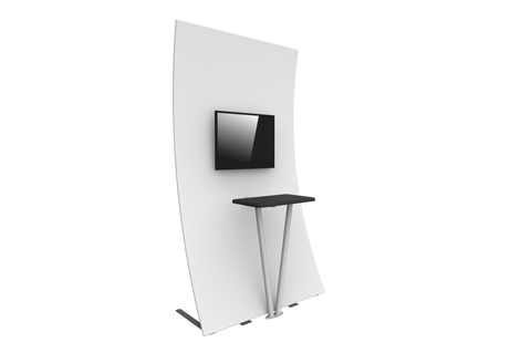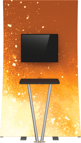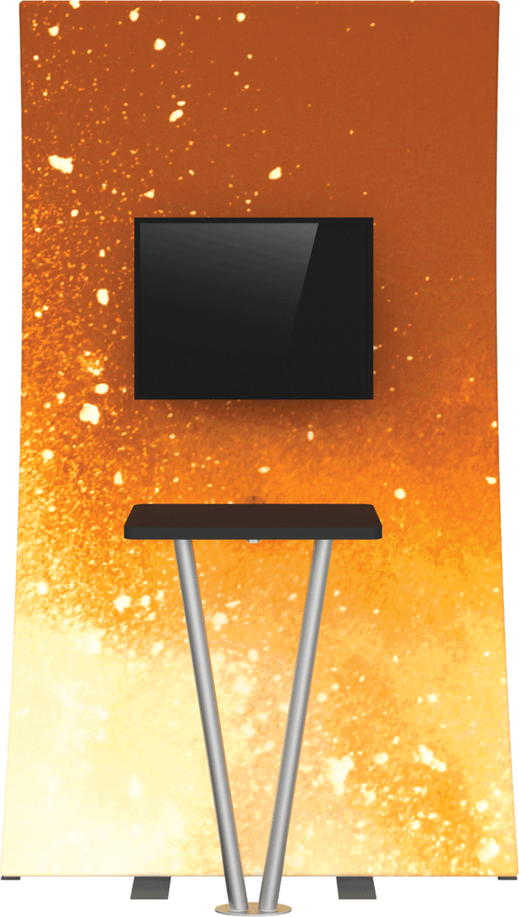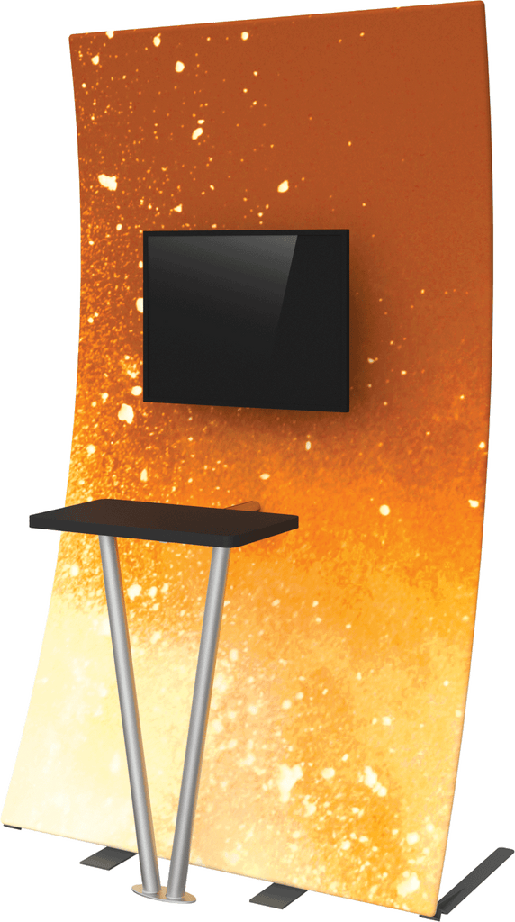 This Engage Kiosk couples a lightweight aluminum tube frame with a state- of-the-art printed stretch zipper pillowcase fabric graphic to create a funky and functional multimedia kiosk. An integrated monitor mount and counter provide space for digital messaging and display, and the gently curving, wide back panel draws the eye and provides additional space for branding or messaging.