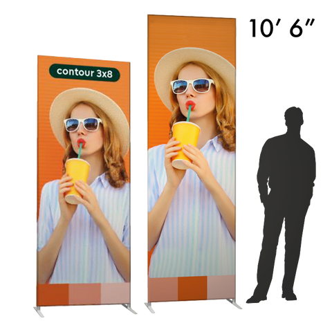 This contour tension fabric wall is a 3 foot wide by 10' 6" tall trade show booth used for trade shows, exhibitions, retail spaces, conferences and networking events.